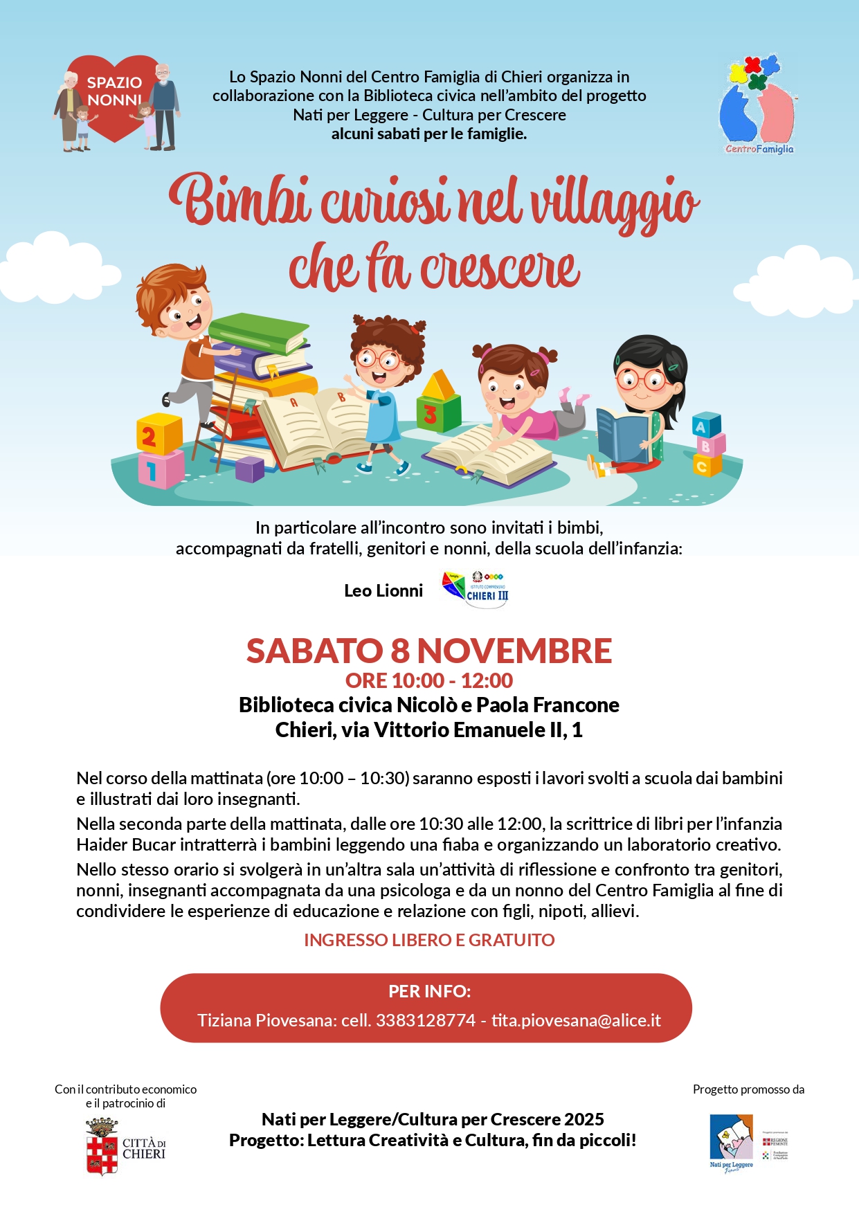 La Biblioteca propone numerose iniziative rivolte sia a un pubblico di adulti sia a bambini e famiglie.