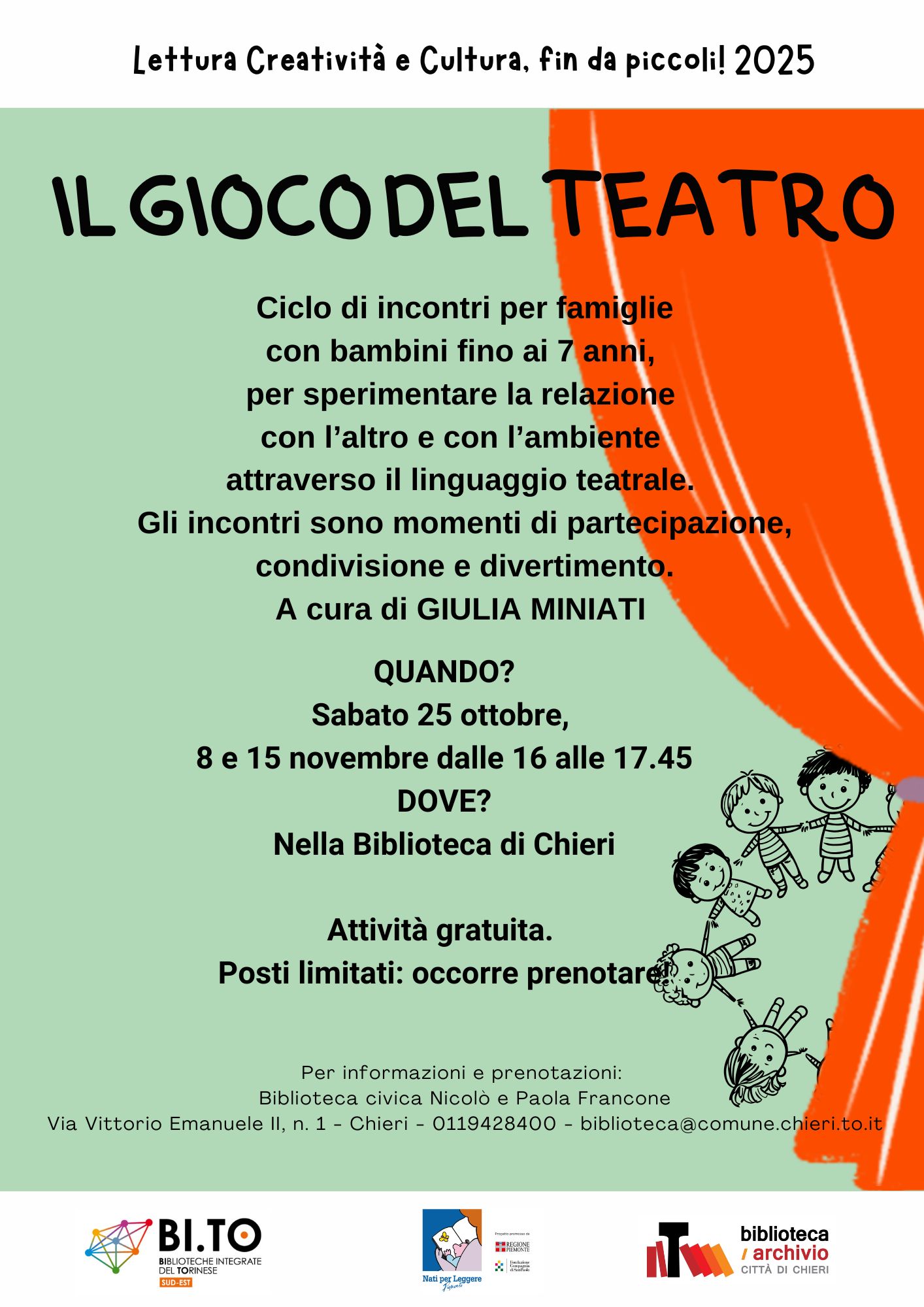 Sul sito BI.TO è possibile scoprire quali sono i prossimi appuntamenti della biblioteca di Chieri e di tutte le biblioteche del Sistema.
